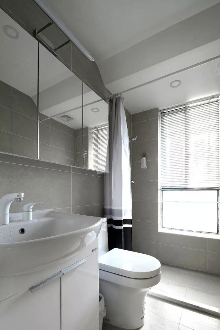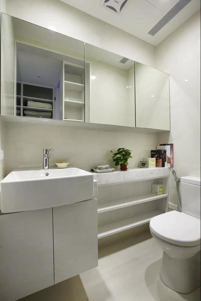 如果你的卫生间空间布局支持的话,还有一个更大胆的改造方法:不妨可以把靠门的这面墙做成透明的,也不妨是一个提升空间亮度的好办法哦。