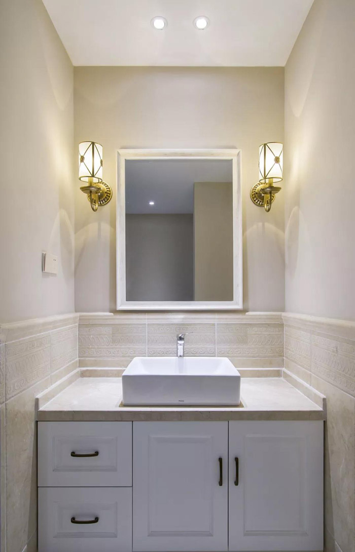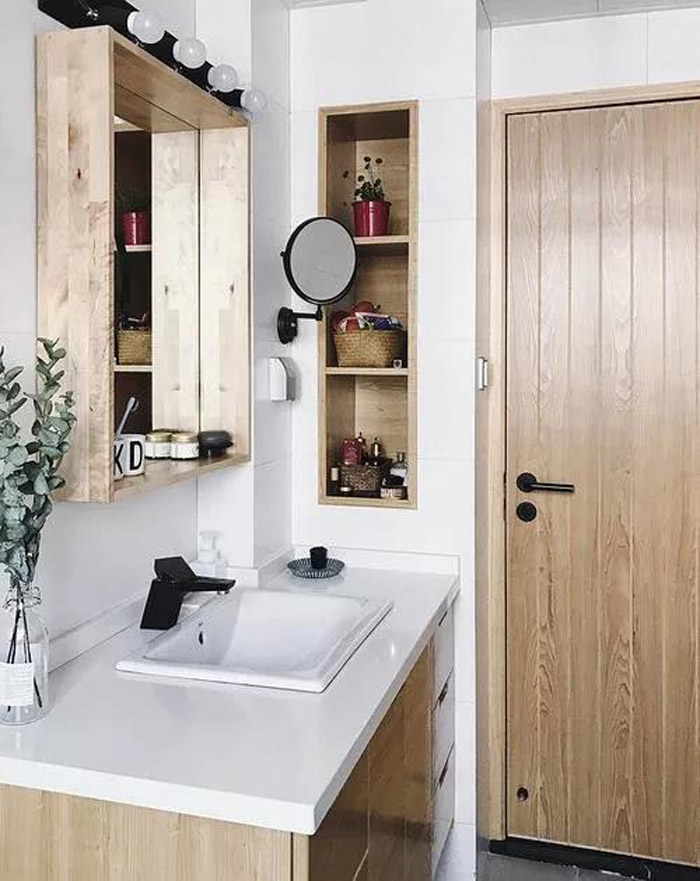 化妆品、洗面奶放的到处都是?那我们不妨在洗手台侧面墙面上做一个壁龛,拿放也是很方便的。